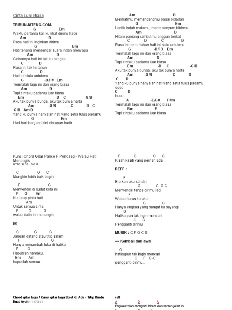 Chord Kunci Gitar Cinta Luar Biasa Andmesh Kamaleng Tribun Jateng