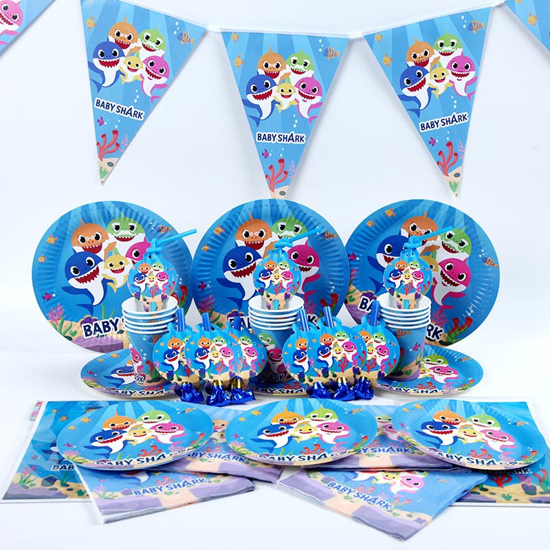 Kids Birthday Party Decoration Set Baby Shark Theme Blowout Plate Flag Banner Hiasan Parti Hari Jadi Shopee Singapore