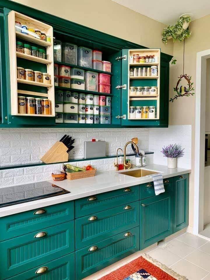Idea Dekorasi Dapur Cantik Emerald Green Nampak Kemas Tersusun Dan Mewah Nadhie Wueen