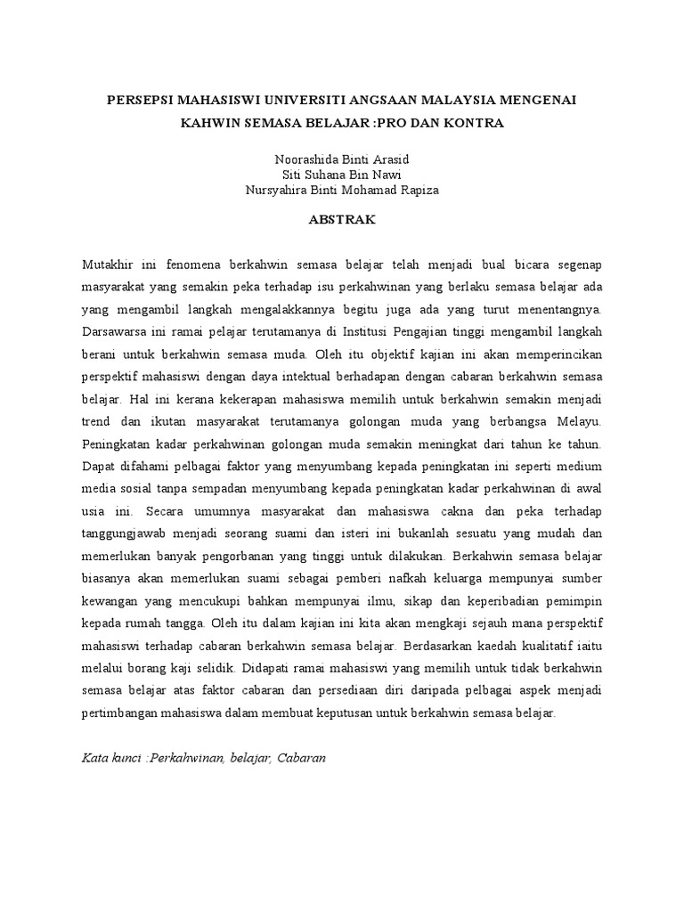 Pdf Perkahwinan Semasa Belajar Kebaikan Dan Keburukannya Dalam Pembangunan Pelajar Universiti