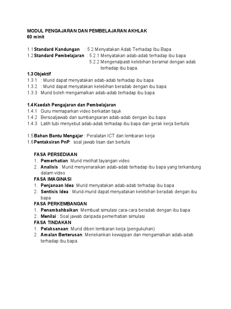 Modul Pengajaran Dan Pembelajaran Akhlak