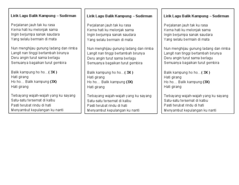 Balik Kampung Sudirman Lirik Lagu Youtube