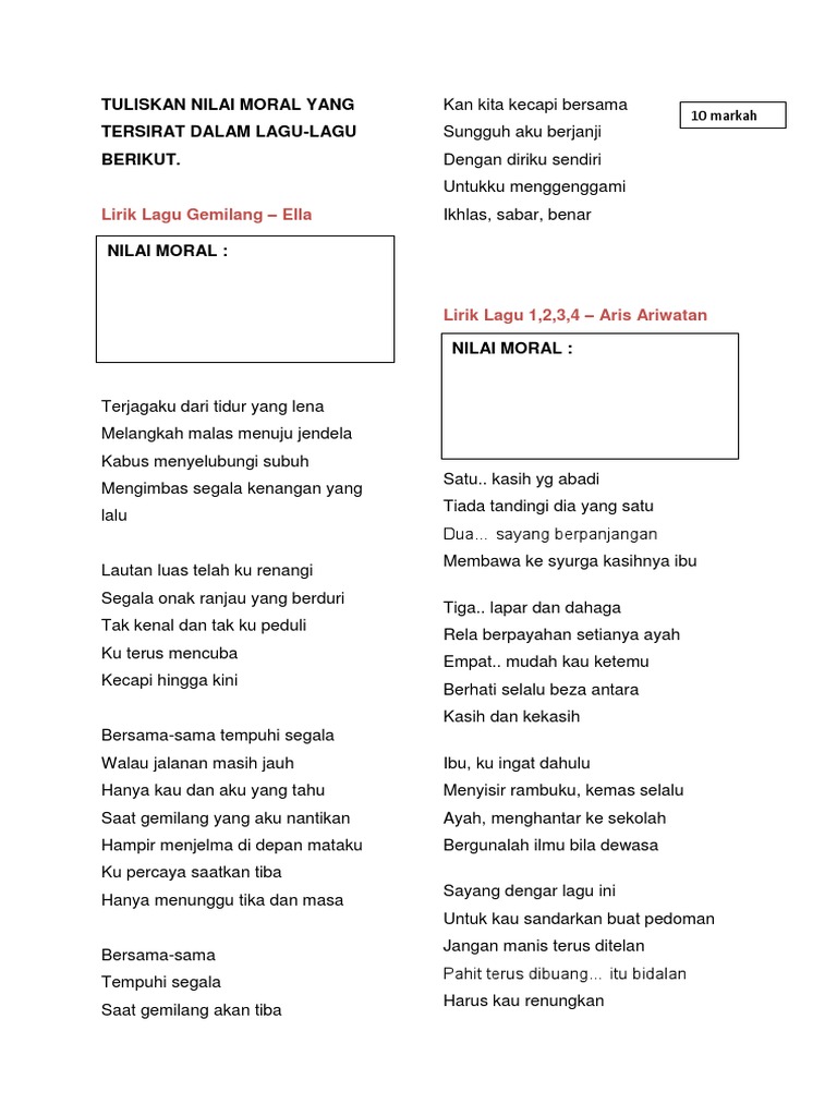 Lirik Lagu Gemilang Ella Tuliskan Nilai Moral Yang Tersirat Dalam Lagu Lagu Berikut