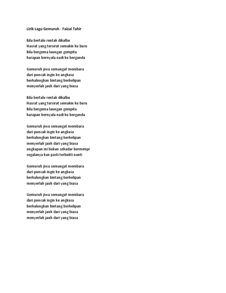 Gemuruh Faizal Tahir Lirik Lagu Tanpa Vokal Youtube