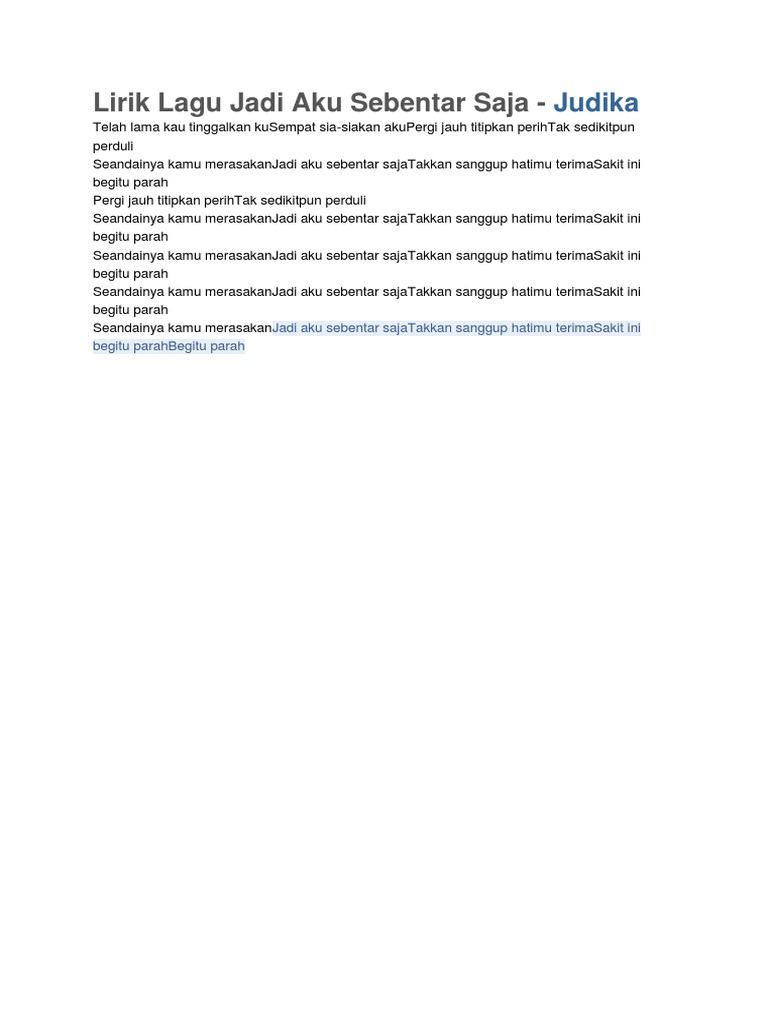 Song Lyrics Jadi Aku Sebentar Saja Kutipan Lirik Lagu Judika