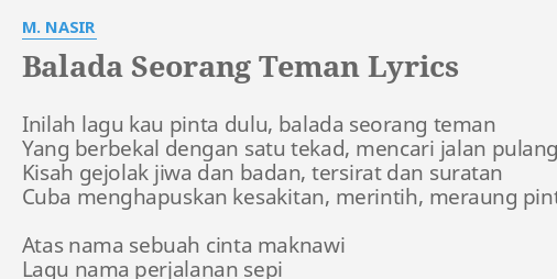 Balada Seorang Teman Lyrics By M Nasir Inilah Lagu Kau Pinta