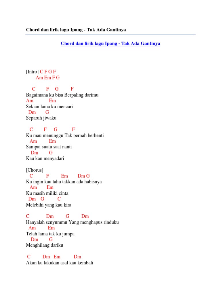 Chord Dan Lirik Lagu Ipang Tak Ada Gantinya