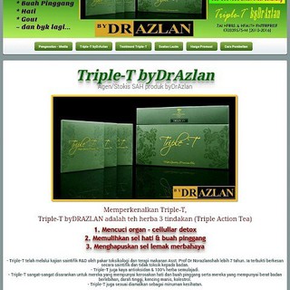 Triple t juga sesuai diamalkan sebagai minuman kesihatan. Selain dapat membantu menghasilkan sel sel baru hati dan buah pinggang teh triple t juga berfungsi sebagai mencuci darah dengan menyingkirkan toksin toksin di dalam badan emlalui perkumuhan. Triple t by dr azlan sememangnya pilihan terbaik. Beliau berjaya menghasilkan dan memasarkan produk produk hasil penyelidikan beliau di bawah jenama bydrazlantm seperti triple t khalifah t golden b kopi durian emas face solution soap body solution soap.