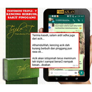 Triple t dr azlan produk selamat berkesan untuk buah pinggang kencing manis darah tinggi dapatkan sekarang dengan harga promosi 60194508424. Sebelum dipasarkan kajian ke atas penghasilan produk triple t ini telah dijalankan selama hampir 7 tahun. Prof dr norazlanshah lebih 7 tahun. 464 likes 36 talking about this.