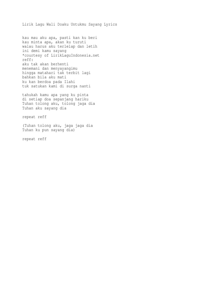 Not Angka Lagu Do A Untukmu Sayang Wali Dunia Not Angka